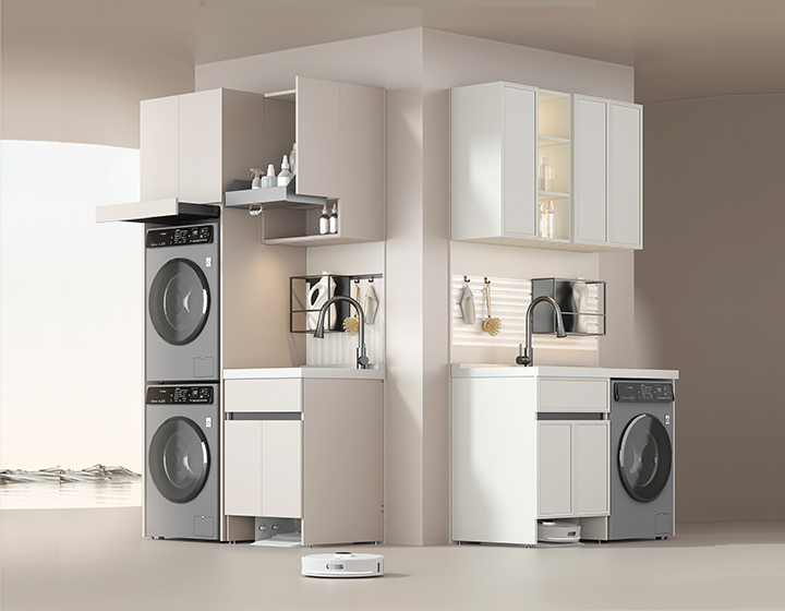 掃地機(jī)器人倉(cāng):節(jié)省空間,上下水可接入陽(yáng)臺(tái)下水管。